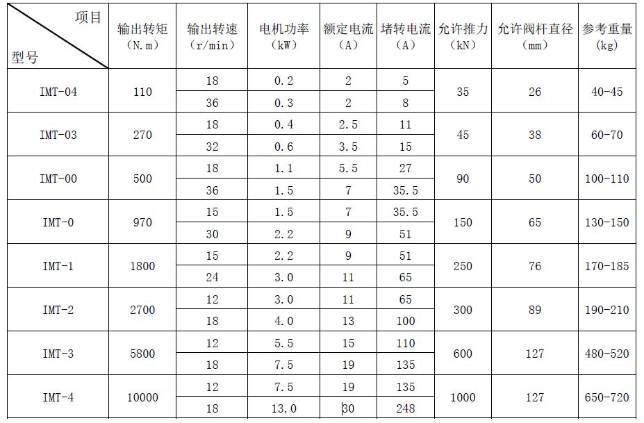 IMT系列技術(shù)參數(shù)表