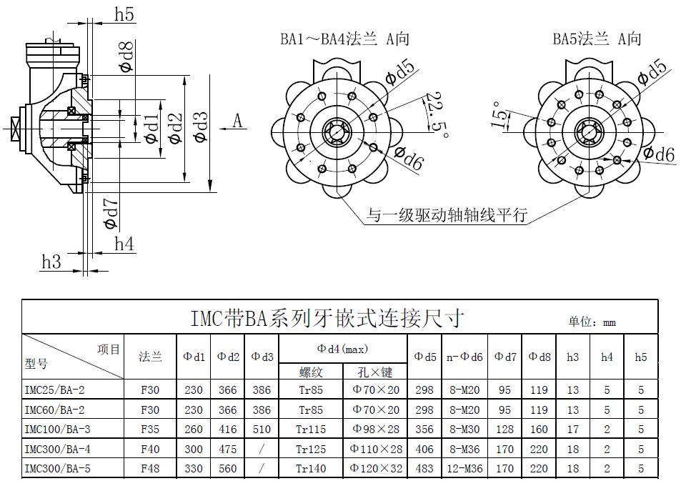 IMC/BA系列閥門電動裝置是一種組合型多回轉(zhuǎn)閥門電動裝置。它適用于閘閥、截止閥等類型的閥門。BA系列產(chǎn)品是可同時承受轉(zhuǎn)矩和軸向推力(通常稱為扭矩推力型)的圓錐齒輪閥門驅(qū)動裝置。其傳動型式可以滿足右旋手動操作閥門為“關(guān)”的標(biāo)準(zhǔn)要求,結(jié)構(gòu)緊湊且大圓錐齒輪便于設(shè)置內(nèi)部有一定直徑的貫通孔輸出軸,可使明桿閥門的閥桿在開啟時從輸出軸的內(nèi)孔伸出。BA系列產(chǎn)品可與中小轉(zhuǎn)矩規(guī)格的多回轉(zhuǎn)電動裝置組合成為較大輸出轉(zhuǎn)矩規(guī)格的組合式多回轉(zhuǎn)閥門電動裝置。
