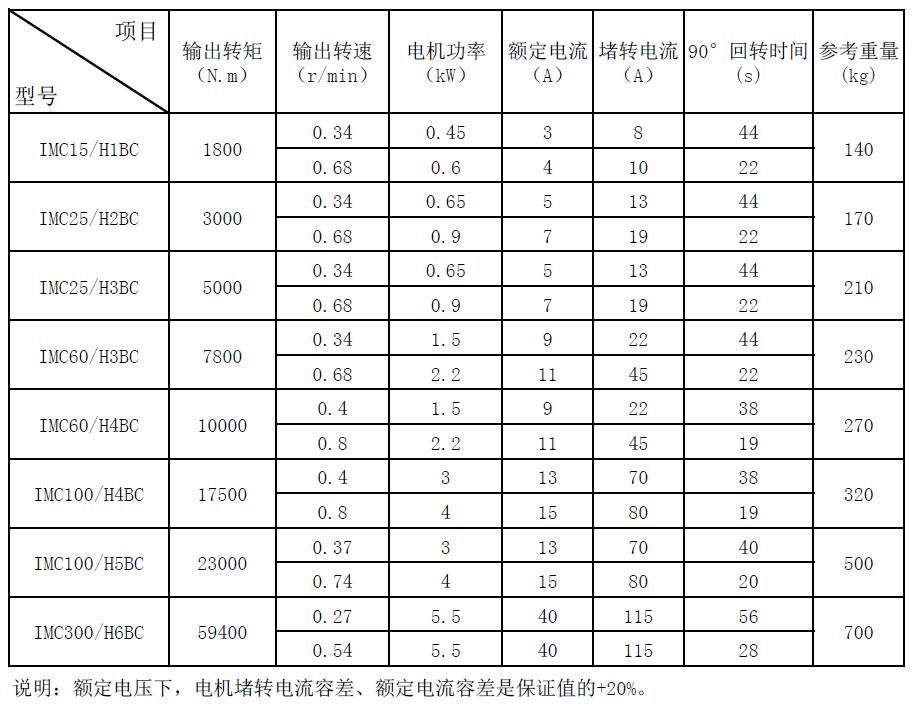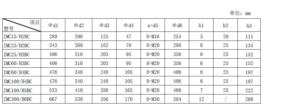 IMC/HBC系列技術(shù)參數(shù)表