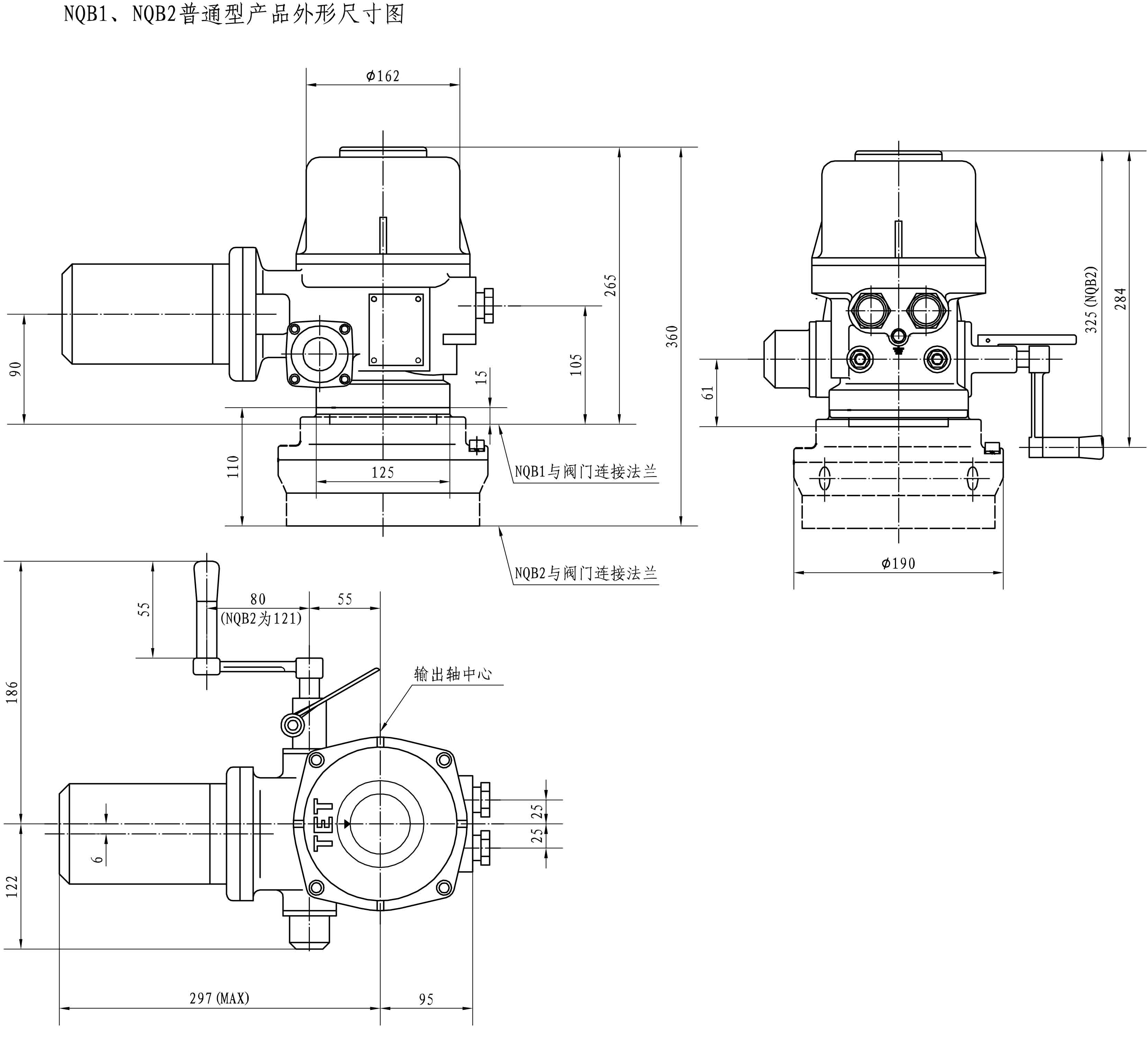 NQB1、 NQB2 電動(dòng)裝置在繼承QB1、QB2 優(yōu)點(diǎn)的同時(shí)又增設(shè)了產(chǎn)品的使用功能,并且改進(jìn)了控制機(jī)構(gòu)。通過改型設(shè)計(jì)的 NQB1、NQB2 電動(dòng)裝置不僅提高了整體性能并且更實(shí)用、可靠。 NQB1、 NQB2 電動(dòng)裝置的定位仍為經(jīng)濟(jì)型,它適用于小口徑球閥、蝶閥、旋塞閥等閥瓣工作中90°回轉(zhuǎn)閥門和類似機(jī)構(gòu)的控制。該產(chǎn)品與閥門組合后可廣泛地應(yīng)用于石油、化工、電力、市政、冶金、食品、輕工等工業(yè)領(lǐng)域的管道控制系統(tǒng)。