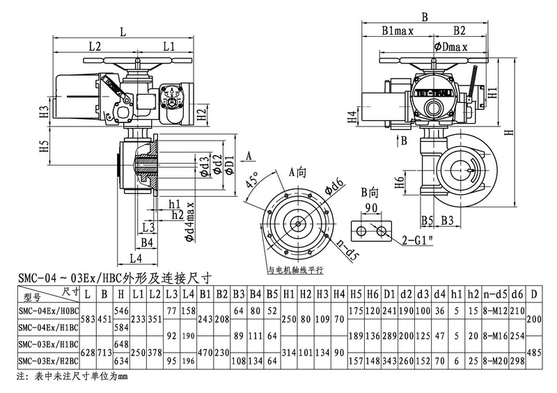 SMC/HBC系列電動裝置是SMC系列多回轉電動裝置與HBC蝸輪減速器的組合型式,它適合球閥、蝶閥等部分回轉閥門的驅(qū)動控制。SMC/HBC電動裝置具有以下特點:結構設計堅固可靠,產(chǎn)品規(guī)格齊全,驅(qū)動轉矩范圍大且動力輸出穩(wěn)定, 具有良好的自鎖性能。 HBC輸出軸結構獨特,裝有與閥桿連接的漸開線花鍵接頭,產(chǎn)品的安裝調(diào)試方便。