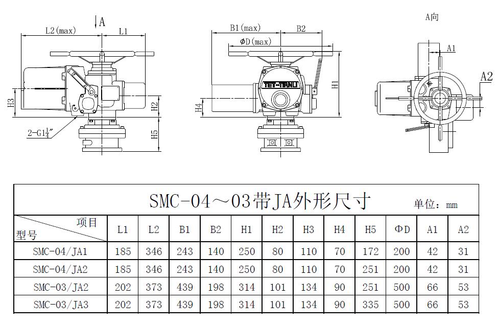 SMC/JA系列閥門電動裝置是部分回轉(zhuǎn)型閥門電動裝置,適用于球閥、蝶閥等類型閥門以及電動風(fēng)門。其結(jié)構(gòu)形式為組合式,由SMC多回轉(zhuǎn)電動裝置與JA部分回轉(zhuǎn)減速裝置相組合而成。該系列產(chǎn)品所適用的環(huán)境條件、溫度、濕度、海拔、防護等級均能達到SMC相應(yīng)規(guī)格產(chǎn)品的水平。