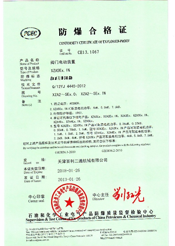 XZA2-5Ex Conformity Certification of Explosion-proof