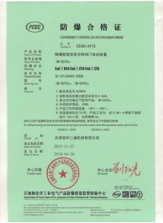 IMT03-04Conformity Certification of Explosion-proof