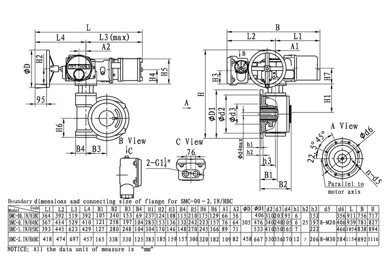 SMC/HBC series ,the combination of SMC series muilt-turn electric actuators and HBC worm speed reducer , was used to control ball valve ,butterfly valve and other part-turn valve actuators. This series actuators have features as firm structure, multiple standard, large torque rang, stable output and self-locking ability. In order to set up with the valve stem, HBC has a involute stem nut.. It is easy to test and adjust.